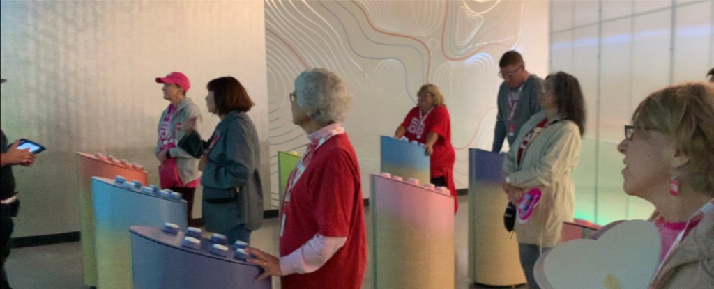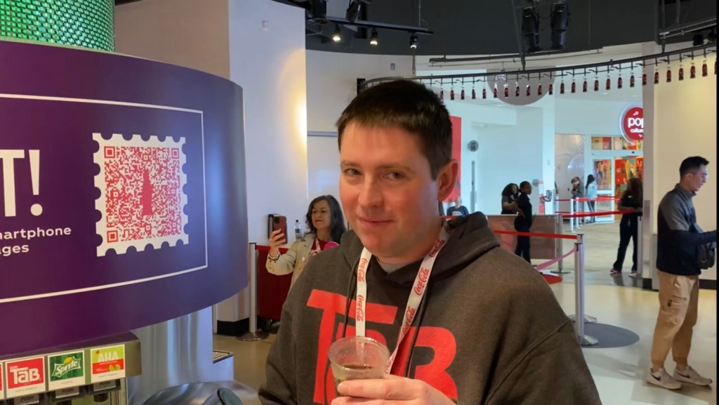 At the end of our tour, which lasted approximately an hour, we headed into the tasting room. The tasting room offers visitors the experience of trying many unique/obscure Coca-Cola products available around the world. Of course, for TaB drinkers the focus was on tasting our favorite soda—TaB. There are six fountains in the room carrying TaB on tap—and we had plenty of time to enjoy our fill. There’s no limit to how much TaB you can drink—other than how long you want to stay in a room full of soda fountains with nowhere to sit down. A quick $5 purchase allowed us to buy a to-go cup—which most of us took advantage of. The TaB was incredibly effervescent, fresh, and flowing freely. TaB fans weren’t the only ones drinking it—many other guests were quite curious about TaB.